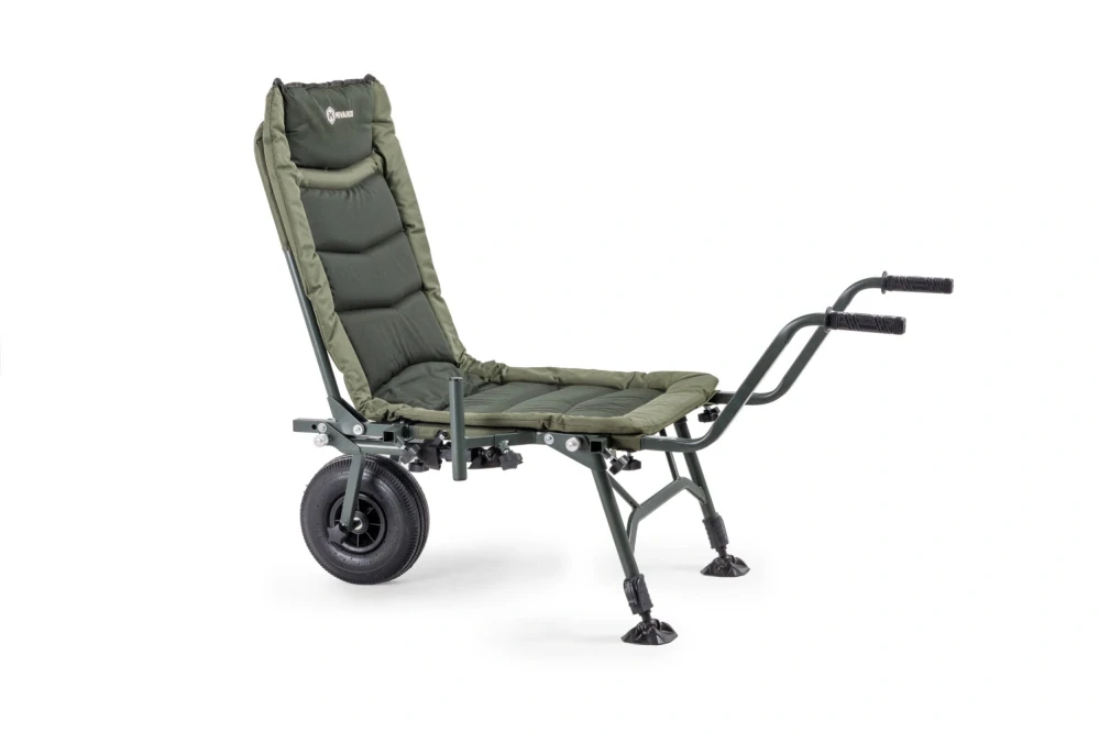 Značkou Mivardi od základu navržené multifunkční křeslo s prodlouženým opěradlem a důmyslným systémem volitelných bočních adaptérů na stolky, držáky a další příslušenství. Ty mohou být umístěny až v osmi různých pozicích po obvodu křesla. Čtyři teleskopické nohy jsou osazeny velkými patkami proti zaboření. Z křesla lze během okamžiku vytvořit robustní přepravní vozík s nafukovacím kolem a dvěma rukojeťmi. Součástí dodávky je omyvatelný ochranný návlek na matraci a jeden boční adaptér na příslušenství. Křeslo i vozík mají nostnost 150kg. Vítěz ceny GRAND PRIX za nejlepší exponát v kategorii plavaná a feeder a rovněž vítěz hlavní ceny GRAND PRIX za nejlepší exponát rybářského veletrhu For Fishing 2018.