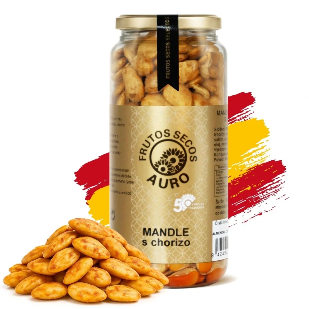 Kombinace jemné, máslové chuti kvalitních mandlí a pikantního, uzeného aroma paprikové klobásy Chorizo je doslova návyková. Není to jen ořech, je to zážitek.
