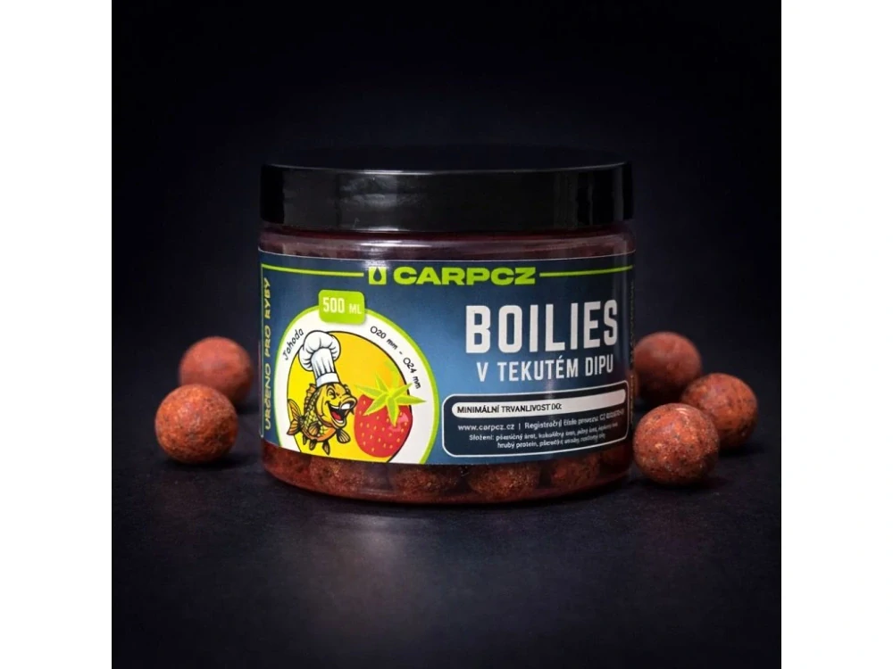 Boilies v tekutém dipu CARPCZ jsou prémiové rybářské boilies zalité aktivním tekutým dipem, které zajišťují okamžitý i dlouhodobý atraktivní účinek u lovného místa. Jsme český výrobce rybářských nástrah a všechny naše produkty vznikají na základě vlastního vývoje a testování v reálných podmínkách. Díky tekutému dipu dochází k postupnému uvolňování atraktorů, aromat a chuťových složek přímo do okolí nástrahy. Boilies tak pracují okamžitě po vhození do vody a zůstávají dlouhodobě účinné i při delším lovu.