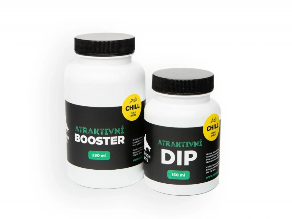 Náš dip CHILL je složen z kvalitních tekutých potrav, esencí, olejů a dalších, pro ryby lákavých, složek. Tento dip (díky své hustotě a koncentraci) využíváme na vylepšení nástrahy pod háčkem, zatímco nejefektivnější využití boosteru je přidání do krmení.