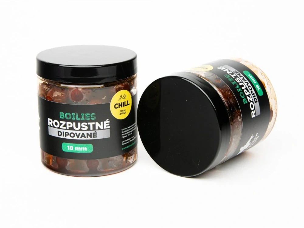 Rozpustné - dipované boilies CHILL jsou ideální do chladné vody, přičemž jsou ještě obohaceny naším dipem CHILL, a proto se stávají perfektní volbou jak pro krátkodobý lov, tak i pro závodní chytání. Tímto získáte tu nejlepší možnou nástrahu pro rychlý lov ryb.