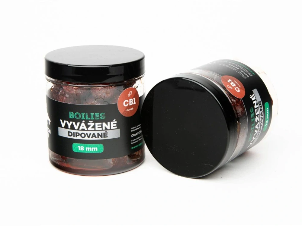 Vyvážené - dipované boilies CB1 jsou perfektní celoroční nástrahou. Kombinace výhod vyváženého boilies, které lehce balancuje na dně nebo lehce nad ním, doplněného o náš dip CB1 je docíleno té nejvyšší možné atraktivity, a proto se jedná o tu nejlepší zbraň na mazané kapry.