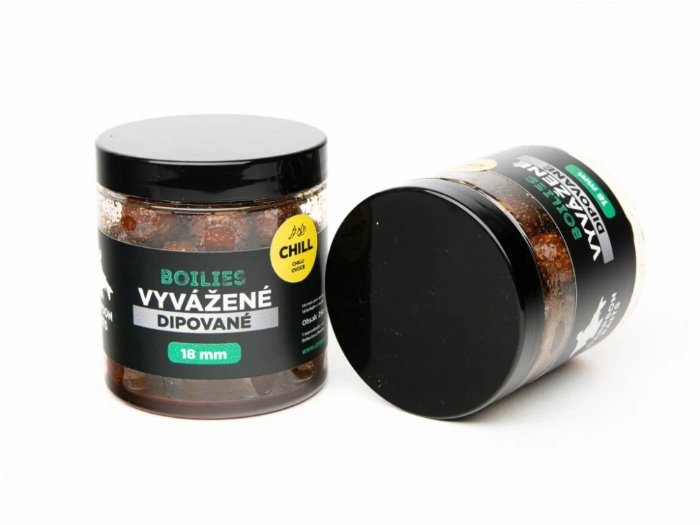 Vyvážené dipované boilies CHILL jsou perfektní celoroční nástrahou. Kombinace výhod vyváženého boilies, které lehce balancuje na dně nebo lehce nad ním, doplněného o náš dip CHILL je docíleno té nejvyšší možné atraktivity, a proto se jedná o tu nejlepší zbraň na mazané kapry.