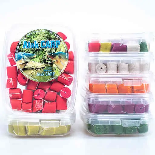 Navázané pelety na šňůrce pro snadné nastražení pod háček.