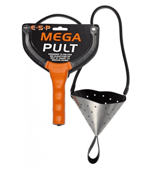 Tento extra velký prak dokáže pojmout až 60 kusů 14 mm boilies a dostřelit ho s překvapivou přesností.