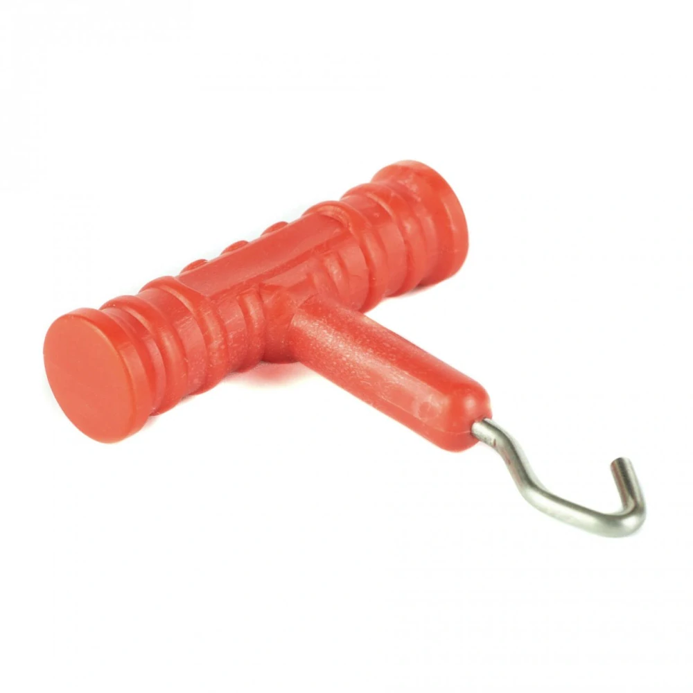 Velmi malá, ale velmi šikovná pomůcka. Utahovač uzlů je nepostradatelný pro výrobu návazců a montáží. Jakoukoli smyčku dotáhnete snadno a rychle, což by v ruce nebylo možné. Stačí zavléci kovový háček a s pomocí ergonomické rukojeti ve stylové červené barvě dotáhnout uzel.