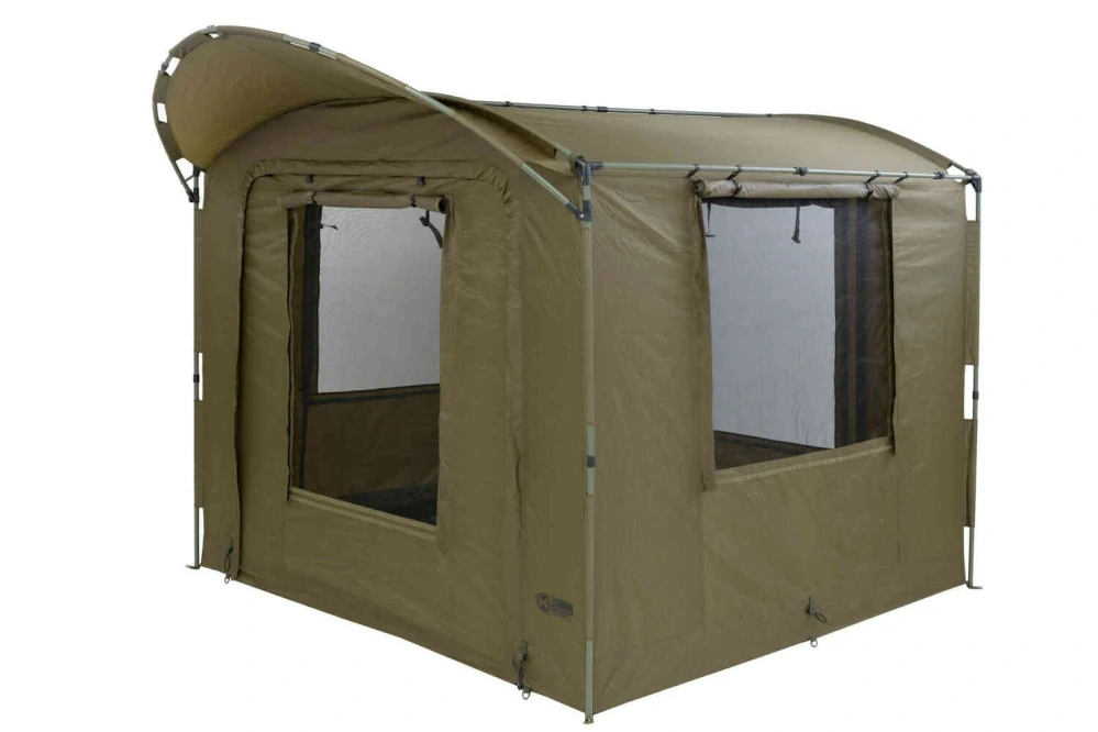Upravená a vylepšená verze prostorného multifunkčního přístřešku, který se stal absolutním bestsellerem nejen v České republice. Zcela přepracována je nosná konstrukce za použití trojcestných spojek mezi střešním žebrem, svislou stojnou a boční rozpěrnou tyčí. Trubky rámu jsou opatřeny pružinovými západkami, které pevně fixují jednotlivé části rámu ve spojce a výrazně usnadňují rozložení a složení přístřešku. Ve spojkách jsou zároveň otvory pro uvázání kotvících šňůr pro případ použití přístřešku ve velmi silném větru. Nové unikátní řešení střešní rozpěrné tyče a bočních rozpěrných tyčí výrazně snižuje jejich průhyb a zvyšuje jejich tuhost i nosnost. Zároveň umožňuje jejich složení na kratší transportní délku. Aretační zámky teleskopických výsuvů Mivardi s extrémní přítlačnou silou spolehlivě fixují rozpěrné tyče i při maximálním vytažení. Pro použití v extrémních podmínkách je jako příslušenství dostupná doplňková sada bočních rozpěrných tyčí. Přístřešek je připraven pro zavěšení dvou velkých, síťových organizérů s praktickými kapsami (dostupné jako příslušenství). Boční stěny a jejich fixace na nosné konstrukci jsou upraveny tak, aby bez problému unesly tyto rozměrné organizéry, naplněné až třemi kilogramy zátěže. Úprava fixace bočních stěn přispívá i k výrazně lepšímu napnutí potahu přístřešku. Příjemným vylepšením je i výrazně zvětšené zadní okno. Dalším zajímavým příslušenstvím je i samostatně dodávaný multifunkční držák prutů a podběráků, určený k nasazení na boční rozpěrnou tyč. K přístřešku je dostupný i samostatně dodávaný plnohodnotný zimní přehoz.