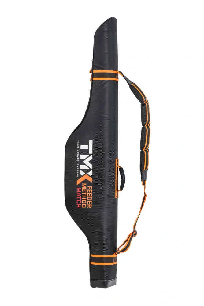 Vyztužené pouzdro na feederové pruty s množstvím doplňkových vnějších kapes, popruhů a úchytů. Vnitřní prostor je polstrovanou přepážkou rozdělen na dvě hlavní komory. Toto pouzdro je navrženo jako multifunkční obal pro přepravu dvou až čtyř prutů s maximálním důrazem na jejich ochranu. Zároveň umožňuje uložení velkého množství dalšího příslušenství. Díky tomu se snižuje celkový počet zavazadel, kterré musíte nosit s sebou. Pouzdro je osazeno polstrovaným popruhem přes rameno i držadlem pro komfortní nošení v ruce. Obaly tašky a další zavazadla série TMX jsou vyrobeny z prémiového, extrémně silného materiálu s luxusním designem ve stylu splétaného carbonu. Tento materiál je zcela nepromokavý a výborně omyvatelný. Na celé sérii TMX jsou použity zátěžové zipy nejvyšší kvality s praktickými táhly Mivardi.