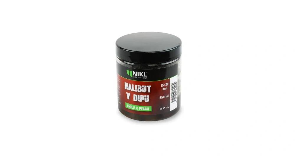 Nikl Black halibut pelety v dipu Chilli & Peach 15+20mm/250mlskladem155 Kč/ ks138 Kč bez DPH
