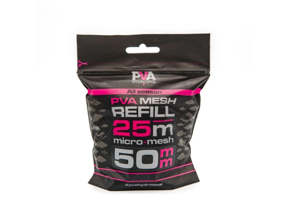 Celoroční náhradní PVA punčocha Hydrospol o průměru 50 mm v návinu 25 m je vyrobena z hustého micro-meshe z japonských PVA vláken, který zajišťuje pevnost při plnění a spolehlivou rozpustnost ve vodě.